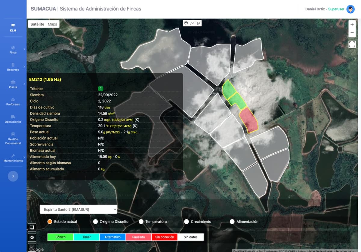 Plataforma integral para gestionar cada etapa de una granja camaronera, desde la alimentación hasta la cosecha.